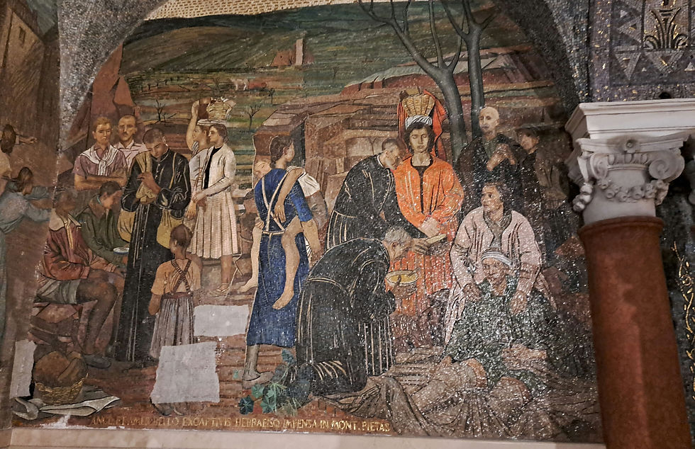 Er kam ursprünglich aus Trier, als Bischof von Ascoli hat er ein Wunder bewirkt, was ihn zu dem Titel brachte.. Die Mosaiken in dessen Krypta erzählen über das Erdbeben 1943 und die Besetzung durch die Deutschen und deren Abzug 1944.