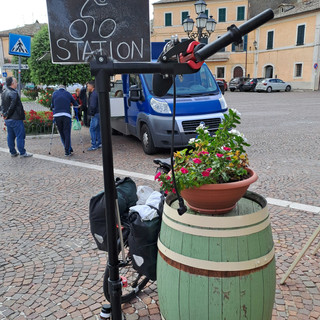 Apropos Pilgerweg: ich treffe auf eine vortrefflich ausgestattete Bikestation in einer Garageneinfahrt. Sowas habe ich südlich von Rom am selben Pilgerweg (bis nach Santa Maria di Leuca) nie gesehen. Man merkt halt: Toskana, anderes Mindset.