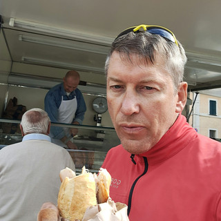 Am Straßenrand steht ein Porchettawagen, 2.50 € die Semmel.( zum Vergleich: Rom 6 €)
