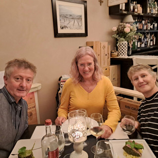 Die Enoteca "I love you" liegt im 11 km entfernten Poggibonsi. Wir probieren Weißwein nach schon ausreichend Rotweingenuss am Nachmittag. Der Betrieber und Somelier ist sehr kompetent - seine Enoteca ist laut Heidi und Googlemaps-Kommentaren der beste Ort in der Toskana um Wein zu trinken und gut zu Essen. Ich wähle den Tonno Rosso, den seine Frau in der offenen Küche vom Gastraum aus einzusehen vorbereitet - lecker!